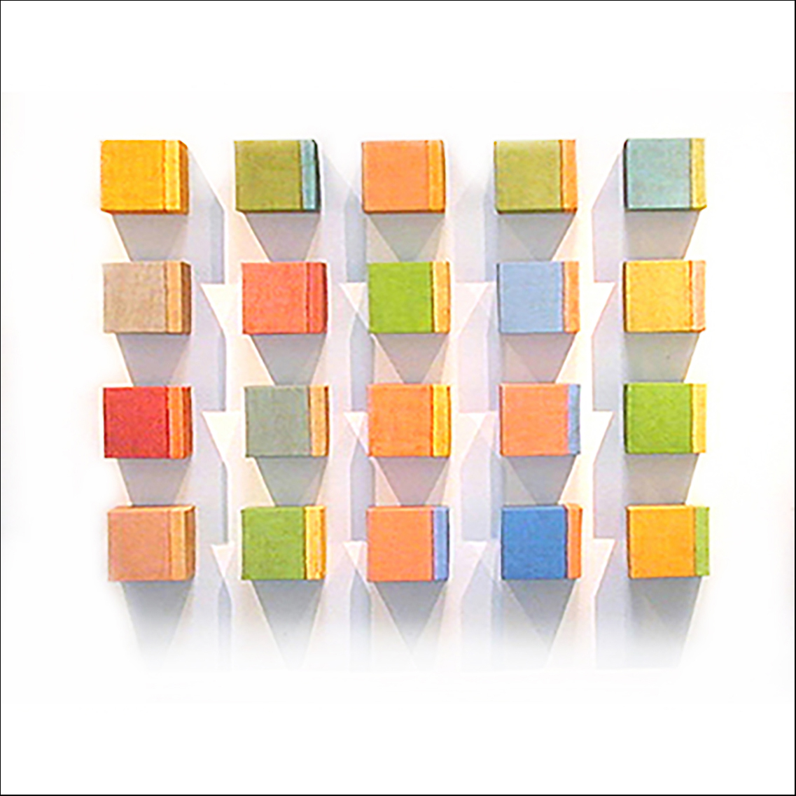 All Boxes are made from several color variations of oil paint on canvas on wood.