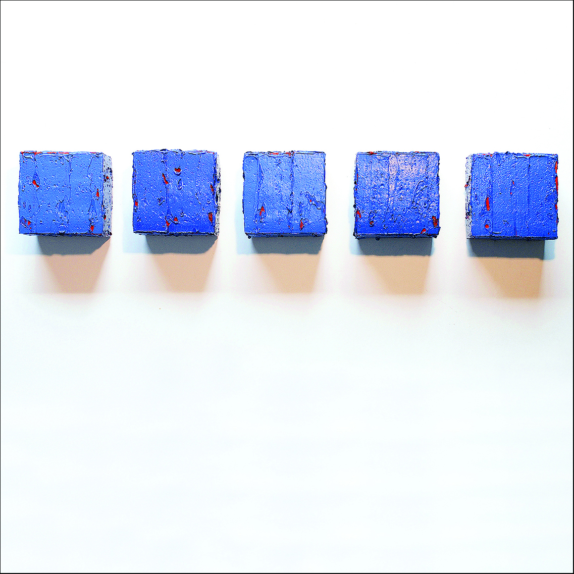 All Boxes are made from several variations blue-purple over red oil paint on wood.