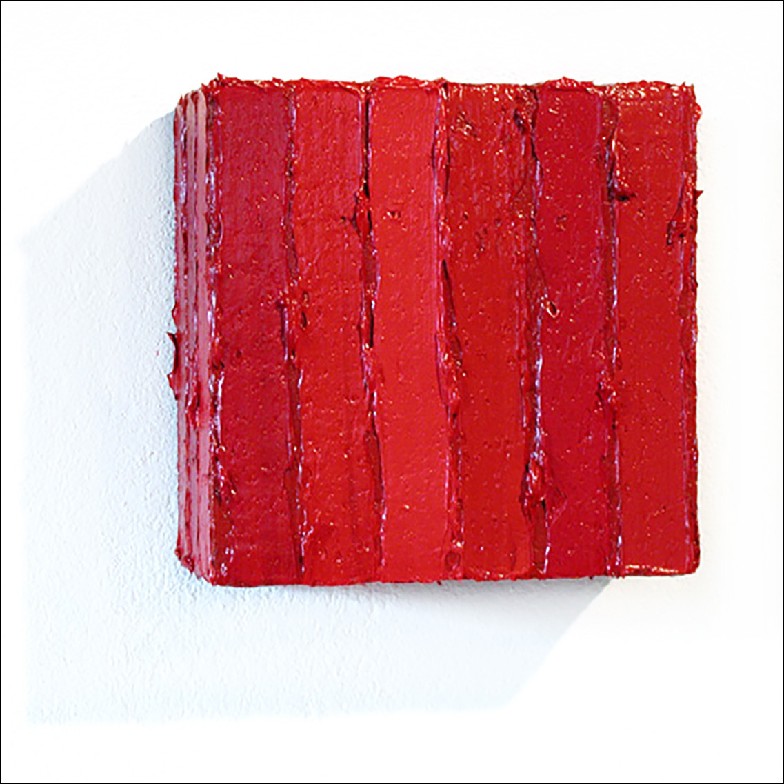 In this series there have been made a total of 5 Boxes. All Boxes are made from several variations red oil paint on canvas on wood.